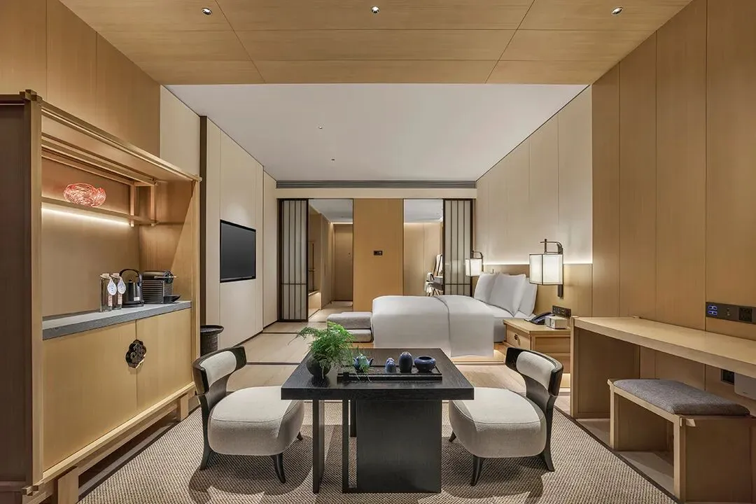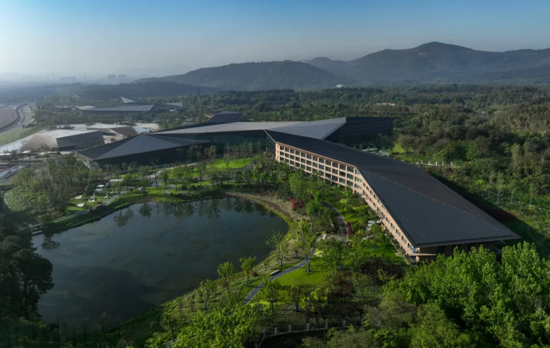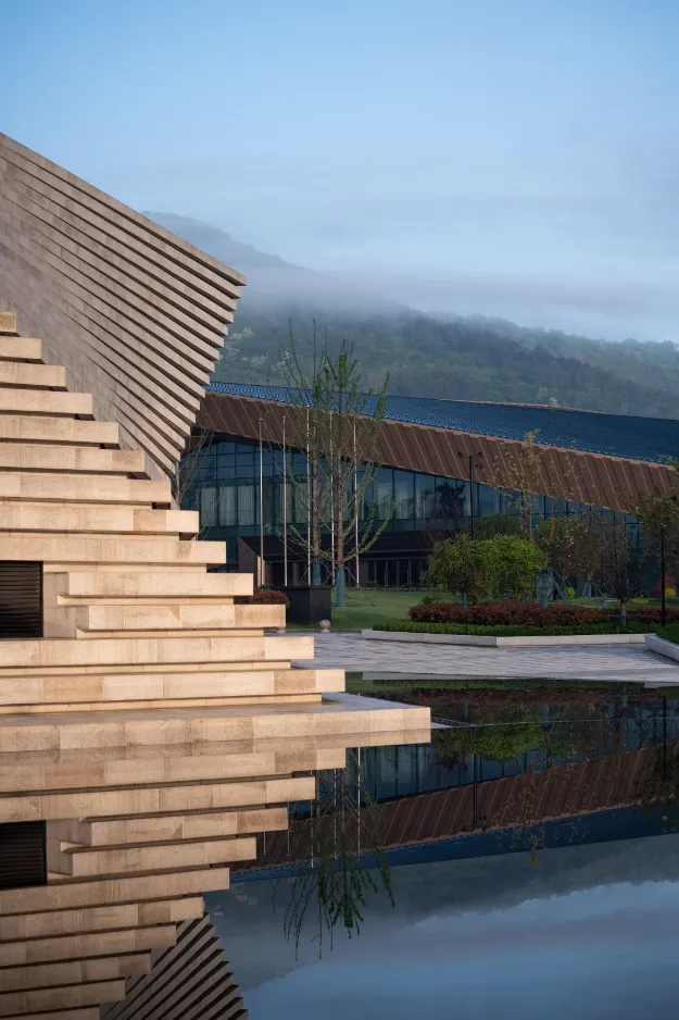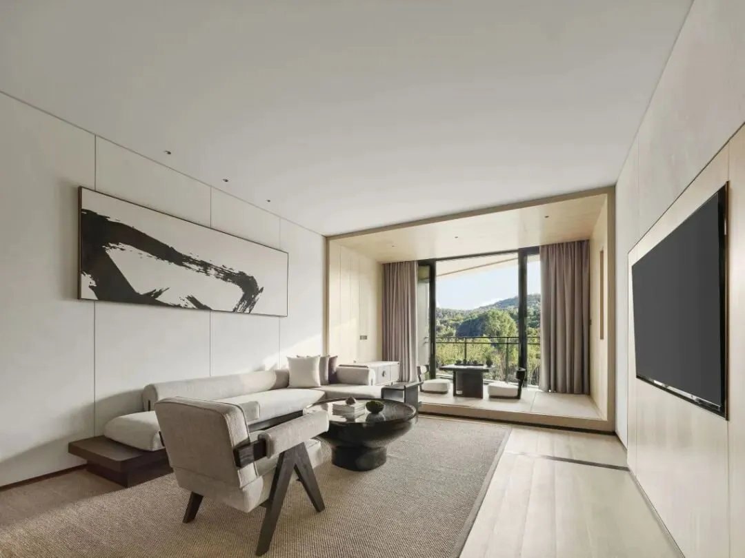 酒店整体设计依托于牛首山自然景观,在充分考虑与环境融合的基础上,追求“隐”和“野”的设计手法,强调典雅的东方美学和轻盈空灵的禅意感受和为酒店控提供更加纯粹自然的居停享受。