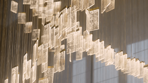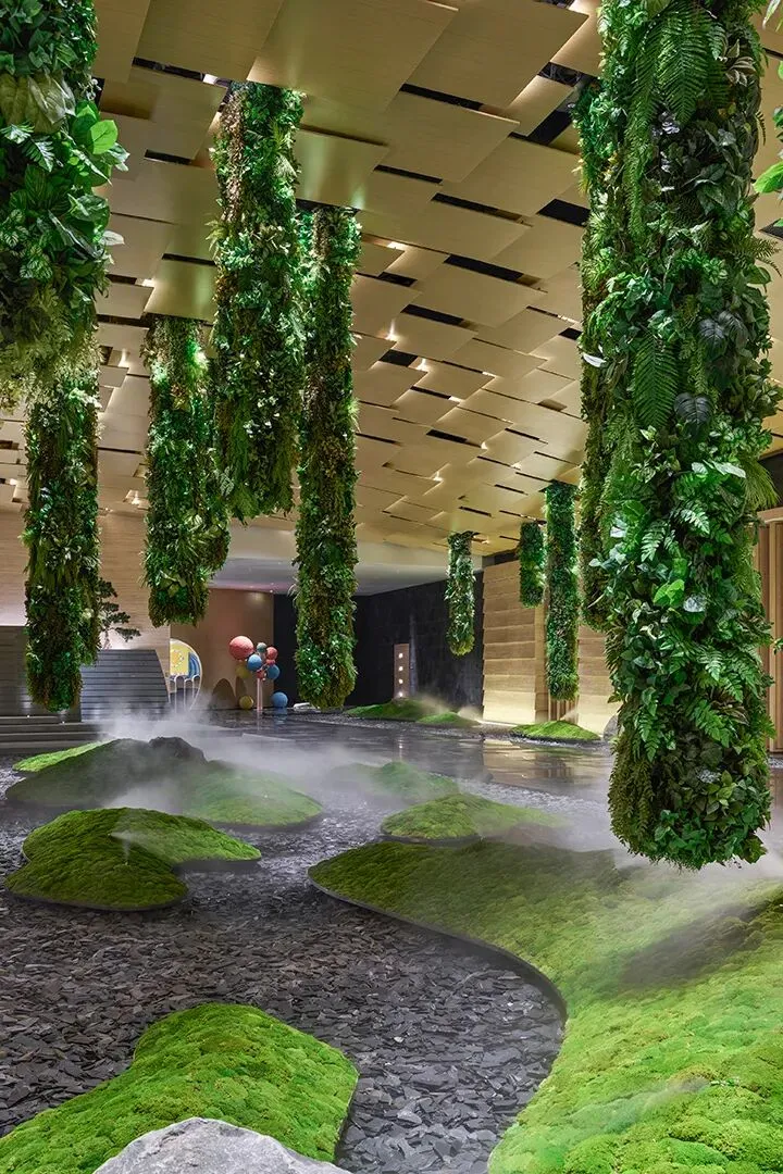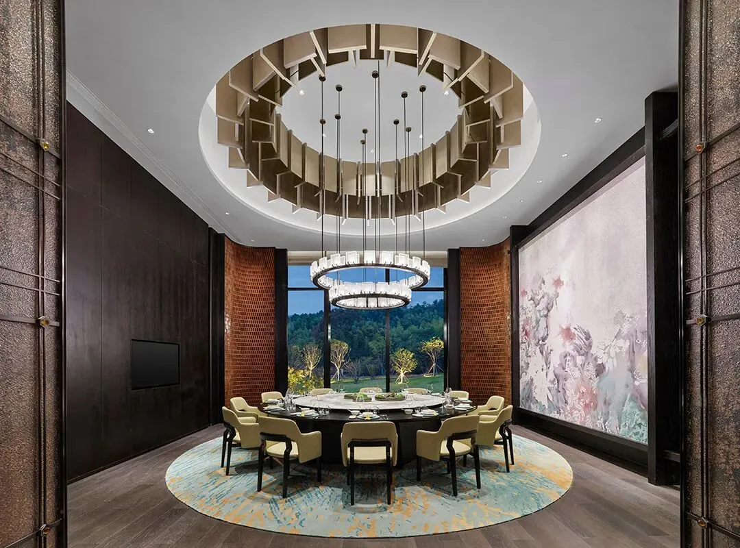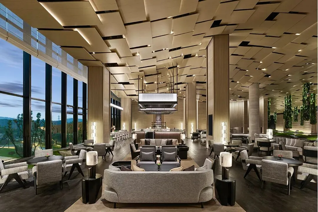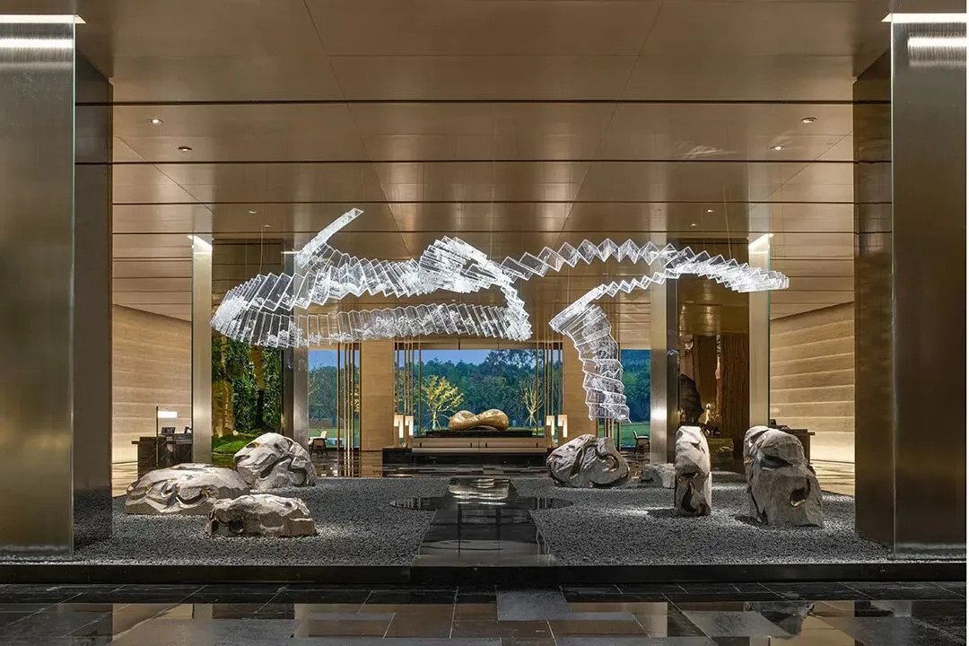 YANG杨邦胜设计团队打造。带着东方美学,4000㎡的阔绰大堂,层高近10米,