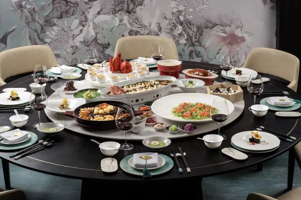 青雅中餐厅,运用自然元素进行艺术设计,提取“鱼”、“石”为主要创作元素,梦幻唯美充满灵性的同时,青绿色调亦配合中餐厅“青雅”主题,以创意融汇食材,为食客带来全新味蕾体验。