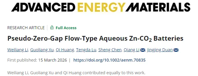 文章标题:Pseudo-Zero-Gap Flow-Type Aqueous Zn-CO2 Batteries