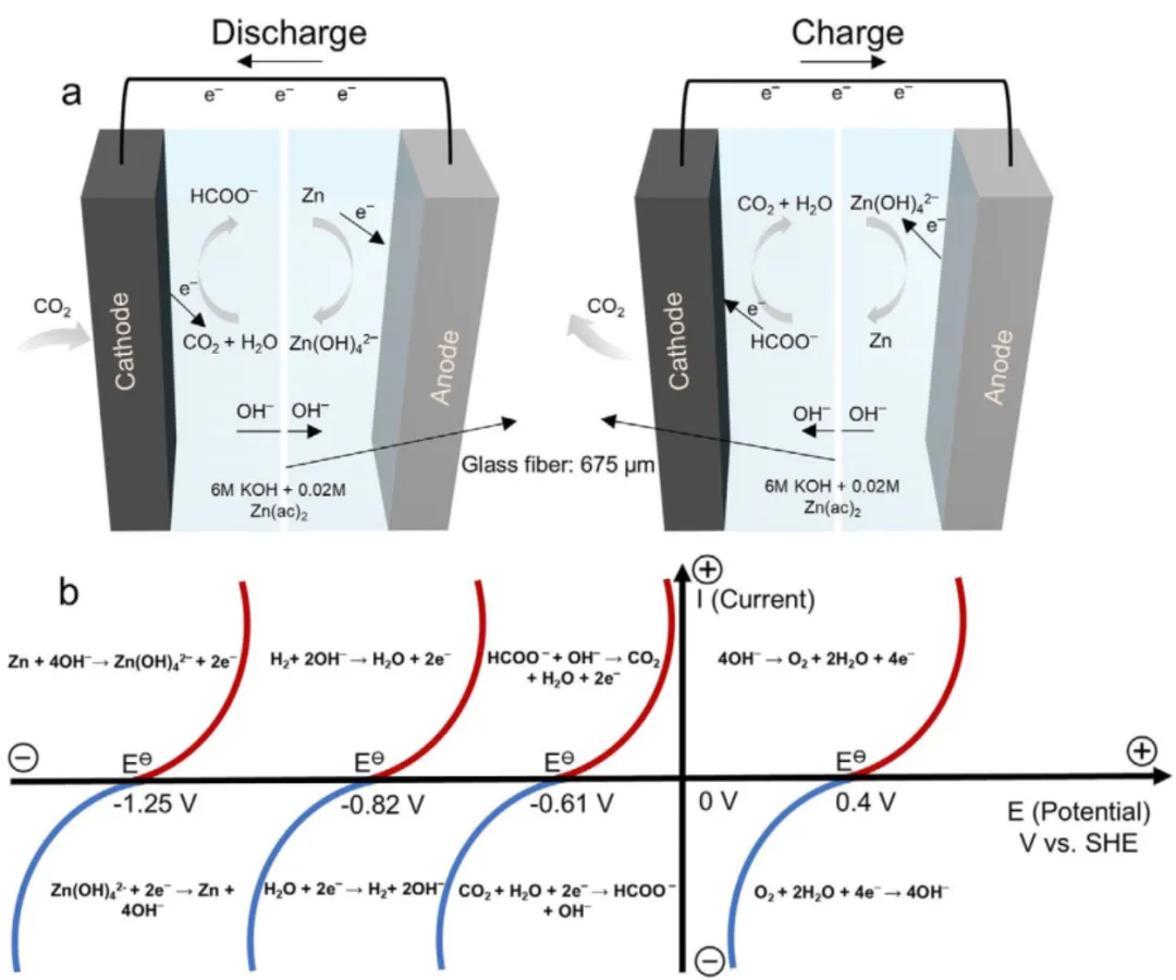 二氧化碳电池是一种缓解环境与能源危机的颇具前景的技术——它能同时将二氧化碳转化为有价值的化学品或燃料。此外,由于火星大气中二氧化碳浓度极高,利用火星自身资源,二氧化碳电池或许也能为火星探索提供生成碳基原料与电能的解决方案。在各种二氧化碳电池中,水系锌-二氧化碳电池(AZCBs)因成本低、环境友好、可再生、安全等优势脱颖而出。尤其是锌金属能耐受反应性水系电解液,在电池放电过程中通过电化学二氧化碳还原反应(eCO2RR)生成高附加值碳产。然而,AZCBs的广泛应用仍受若干瓶颈问题限制,如放电电位与电流密度低、功率密度小、能量效率差等,制约了其大规模应用。目前,大多数研究集中在eCO2RR电催化剂上,以调节放电产物和电池性能,而由于低放电电势和小电流密度,电池功率密度仍然被限制为小于10 mW cm-2。
