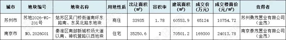 南京秦淮区南部新城G01地块,容积率2,成交价16.93亿,楼面价24014元/㎡,是金茂继25年7月后再度在南京补仓。