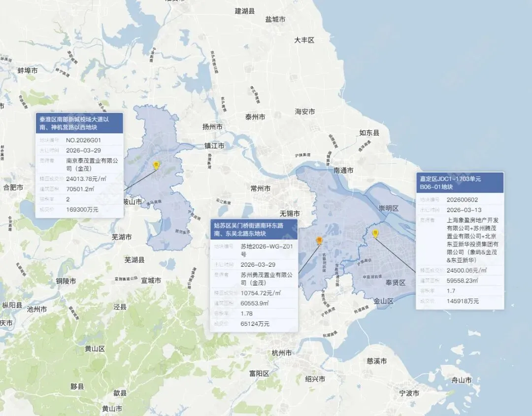 3宗地块均位于长三角高能级城市的核心成熟板块: