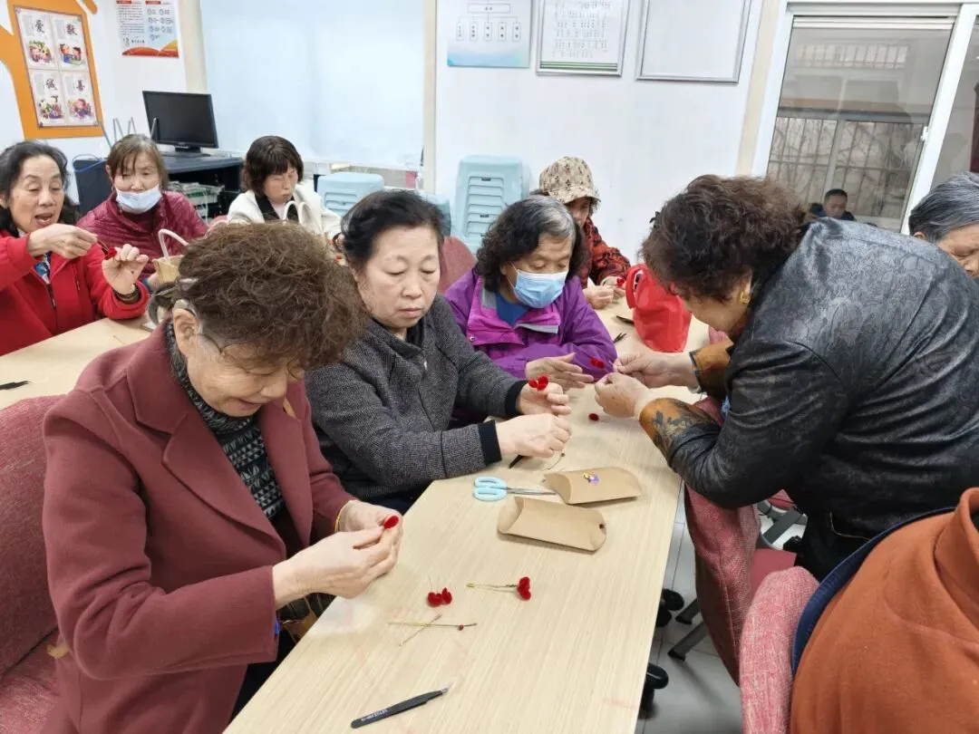 居民们全神贯注、动手实践,指尖轻捻、细心雕琢,原本普通的绒丝在巧手下逐渐舒展,化作一朵朵形态生动、色泽温润的红梅。大家相互交流心得、展示作品,分享创作乐趣,现场氛围温馨热烈。完成作品的居民们爱不释手,纷纷表示既学到了非遗知识,又体验了手工创作的快乐,真切感受到传统工艺的精妙。