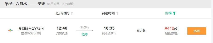 注:此票价无免费托运行李额,不含机建及燃油,票价实时变动,请以官方购票系统最终查询及出票为准。