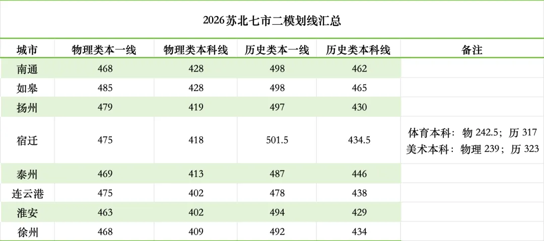 2026年南京&盐城一模、苏北七市二模划线、赋分、最高分出炉