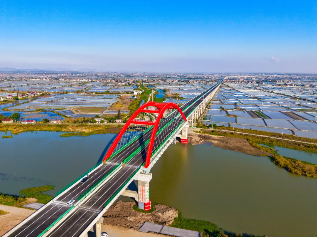 作为控制性工程,全长1.3公里的长河特大桥施工面临多重挑战——其横跨枞阳与宜秀界河,地处菜子湖湿地生态敏感区,加之主桥133米主跨采用悬臂现浇斜拉索结构,对施工精度与安全管控提出极高要求。建设团队创新应用预应力智能张拉、无人机激光雷达航测等多项新技术,以反力架预压工艺规避施工风险、缩短工期,同时通过钢护筒防渗漏、施工用水循环回收等“绿色施工”举措,在实现工程建设与生态保护双赢的前提下,高效完成大桥全幅贯通的节点目标。