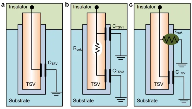 图1TSV故障模型。a,无故障;b,空洞故障;c,泄漏故障。4