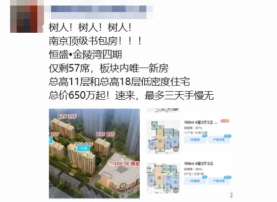 户型上,11层洋房为建面约132-181㎡四房;18层小高层为建面约146-150㎡四房。在中介发布的文案当中,恒盛金陵湾此次推出的这批房源属于“板块稀缺货”——因为整个板块目前只有它一个在售新房,且户型大、楼层低,在“老破小”的鼓楼板块颇为亮眼。首先是产品类型。与前期动辄50多层的超高层不同,这批是11-18层的低密房源,据悉得房率高达约80%,居住舒适度更高。其次是改善大四房为主。从132㎡起步的洋房到146㎡起步的小高层,这批房源均为大四房设计,这对于有二孩或者和老人同住的家庭来说,一步到位。最后是价格吸睛。按照网上房地产数据,2024年3月项目销许均价还在5.38万/㎡,但目前这批房源均价仅约4.3万/㎡,直接降了1万/㎡。同时,这批房源还被纳入了鼓楼人才房票房源库,人才购买还能享受起步3万、最高300万元的补贴。洋房+小高层、比前期业主少花1万/㎡,如此条件下的鼓楼双学区房,的确吸引了不少人关注。据中介最新透露,截止到今日上午(3.30),这批房源去化已近半,还剩20多套房源未售。新房市场层面来看,虽然小区土地使用年限已缩水17年,但的确是当下板块唯一在售新房,又有树人双学区傍身,稀缺性不言而喻。同小区相比,既比高层住宅舒适度更高,又比两年前均价低1万/㎡,优势明显。恒盛金陵湾在南京二手学区房市场中,称得上是佼佼者——流动性较高。数据显示,过去90天,金陵湾卖出了44套房源,成交量位居全市第一。成交价格上,目前小区整体挂牌均价约4.7万/㎡,近期成交均价为3.7万/㎡。要知道,小区在2021年初还卖出过约8.8万/㎡的天价。比如,一套建面约97㎡的中楼层房源,去年2月份的成交总价为455万、单价4.68万/㎡;而今年3月,就只能卖到364.5万,折合单价约3.73万/㎡。虽然相对普通二手房来讲,小区抗跌属性较强,但仍在市场影响下持续探底。综合来看,如果以4.3万/㎡的均价去买这批新房,虽然比去年的销许价便宜了1万,但对比当下学区房市场,价格上并不占优势。我们回到最初的问题:恒盛金陵湾这批新房,到底能不能冲?在锐评君看来,如果有学区需求且预算充足的自住买家,可以冲。在南京,树人本部双学区的含金量依然能打。每年中考,树人学校的成绩稳居南京公办校第一梯队,对于重视教育的家庭来说,这是一张确定性极高的入场券。而且,金陵湾是板块内难得的次新房,对比周边新河二村等“老破小”,还可兼具更高品质的居住环境。金陵湾的二手房价格,从最高8.8万/㎡跌到现在的4万/㎡左右,早几年楼市高热带来的价值已消散不少。这批新房4.3万/㎡起步,虽然谈不上“倒挂红利”,但至少没有站在“均价5.38万/㎡”的高岗上,对于想要兼顾学区属性和居住属性的家庭来说,这批房源的确可以考虑。但需要注意的是,若是抱有投资心态想“抄底”的买家,建议慎重考量,毕竟未来学区房的投资属性将逐渐降低。二手房市场趋于理性,多数学区房“暴涨”行情不再。我们以恒盛金陵湾为例。小区在2021年市场巅峰时期,8万+/㎡的成交单价比比皆是;但在去年就已降至5万/㎡以内,今年3月的成交均价则直接来到了3.7万/㎡以内。还有新河二村,2020年最高单价近9.8万/㎡,去年开始“4”字头频出,至今年3月,成交参考均价降到了4.4万/㎡。在锐评君看来,恒盛金陵湾这50多套房的入市,就像是南京学区房市场的一枚深水炸弹——用极低的价格试探着市场的底线,也用“学区+低密”的配置诱惑着“鸡娃”家长。如果你手握五六百万预算,既紧张孩子教育问题,又不想住在老破小里,那金陵湾是少数几个能平衡“学区”与“居住”的选择。但如果只是冲着“低价”去投资,在如今生源减少、市场下降的大趋势下,学区房纯投资属性的含金量早已不如往年,建议要慎重入手。