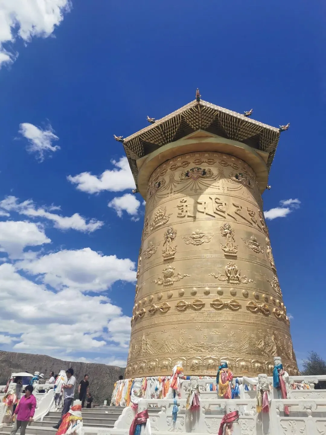 游览【娘玛寺世界最大转经筒】(车程约3.5小时,游览约0.5小时)该寺是由康区多·知钦寺(宁玛派一著名寺院)的喇嘛旺达尔所建,年代不详。甘南玛曲阿万仓宁玛寺大藏经转经筒,平台四周为A级汉白玉栏杆,转经筒高约50米,重量约300吨,转经筒筒身部分为钛金制作,外部镶嵌浮雕佛像,花纹贴纯黄金金箔1160平方米,内部藏有经书约11万册,是甘南藏地最具有代表意义的建筑,目前正在申报世界最大的大藏经转经筒吉尼斯纪录。