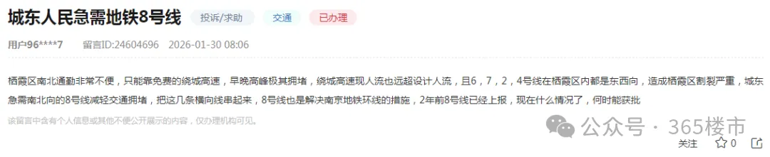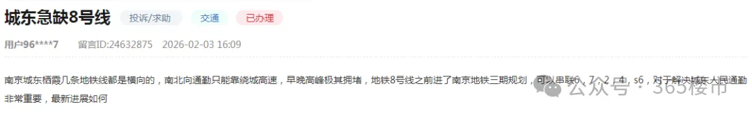 事实上,关于地铁8号线的呼声近年来从未间断。就在1月份,还频频有市民在问政平台上强烈呼吁尽快建设地铁8号线,以缓解南京绕城公路“堵到崩溃”的交通压力,方便城东人的上班通勤。