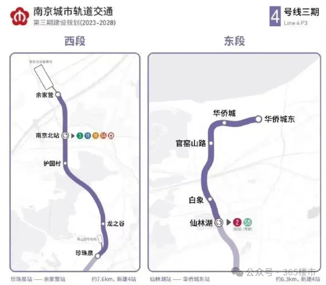 根据官方最新回复:地铁4号线为城市东西向重要轨道交通跨江线路,规划西起余家营站,经南京北站、江北商务区跨江后,衔接鼓楼、仙林片区,终至华侨城东站。目前,线路一期仙林湖至龙江段已通车运营;二期龙江至珍珠泉段正在建设。规划线路进一步向北延伸,西段自珍珠泉继续向北,重点服务南京北站枢纽片区;东段自仙林湖向北,覆盖白象、红枫、华侨城等居住片区,现阶段正在开展各项前期方案研究工作。