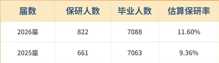 据学校公示的推免数据显示,南信大2026届本科毕业生822人获推免,整体保研率11.60%,相比2025届保研率明显上涨;其中长望学院保研率高达32.82%,大气科学学院16.38%。