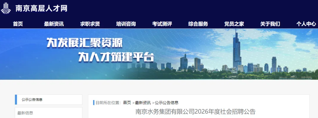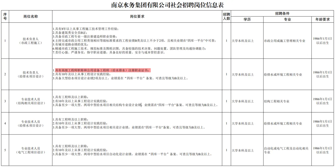 具体岗位条件详见《南京水务集团有限公司社会招聘岗位信息表》(附件1)