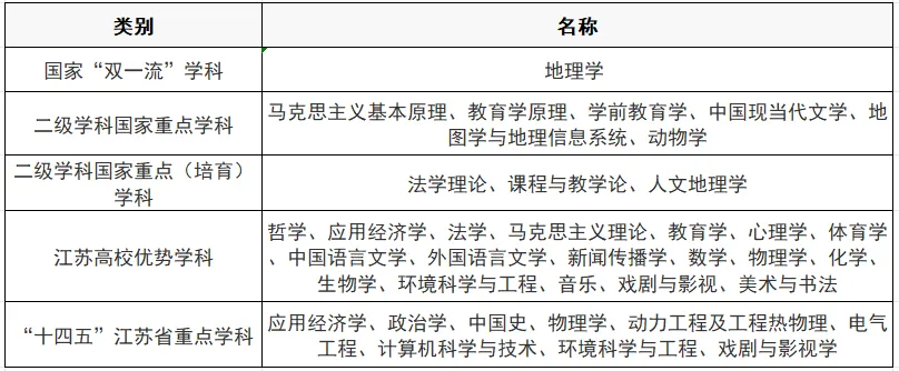 学校主源可追溯到1902年的三江师范学堂,后历经两江优级师范学堂、南京高等师范学校、国立东南大学、国立第四中山大学、江苏大学、国立中央大学、国立南京大学等时期;学校另一源头为1888年的汇文书院,后发展为私立金陵大学,1951年与私立金陵女子文理学院合并,成立公立金陵大学。1952年在原南京大学、公立金陵大学等有关院系基础上组建南京师范学院。1984年更名“南京师范大学”。1996年入选国家“211工程”高校。2000年南京动力高等专科学校并入。2015年成为省部共建高校。2017年入选国家首批“双一流”建设高校。2018年成为省部共建“双一流”建设高校。2021年入选江苏高水平大学建设高峰计划A类建设高校。2022年入选国家第二轮“双一流”建设高校。学校有1个国家“双一流”建设学科,6个国家重点学科,3个国家重点(培育)学科,18个江苏高校优势学科,9个“十四五”江苏省重点学科;有24个博士后科研流动站,24个一级学科博士学位授权点,1个二级学科博士学位授权点,41个一级学科硕士学位授权点,7个专业学位博士授权类别,32个专业学位硕士授权类别;有14个进入ESI全球前1%学科。