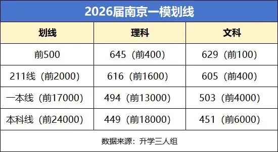 刚刚,2026届南京高三一模划线出炉!具体如下: