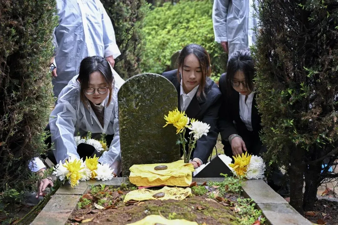 祭扫当天,学生志愿者一同来到烈士墓碑前,为烈士默哀献花。南京科技职业学院辅导员詹书汇认为,为烈士寻亲,不仅是对英烈的缅怀与告慰,更是一堂生动的红色教育课。“这些‘00后’志愿者用实际行动诠释了青春担当,他们在寻亲过程中,不仅感受到了英烈的家国情怀,更懂得了珍惜当下的和平生活。”