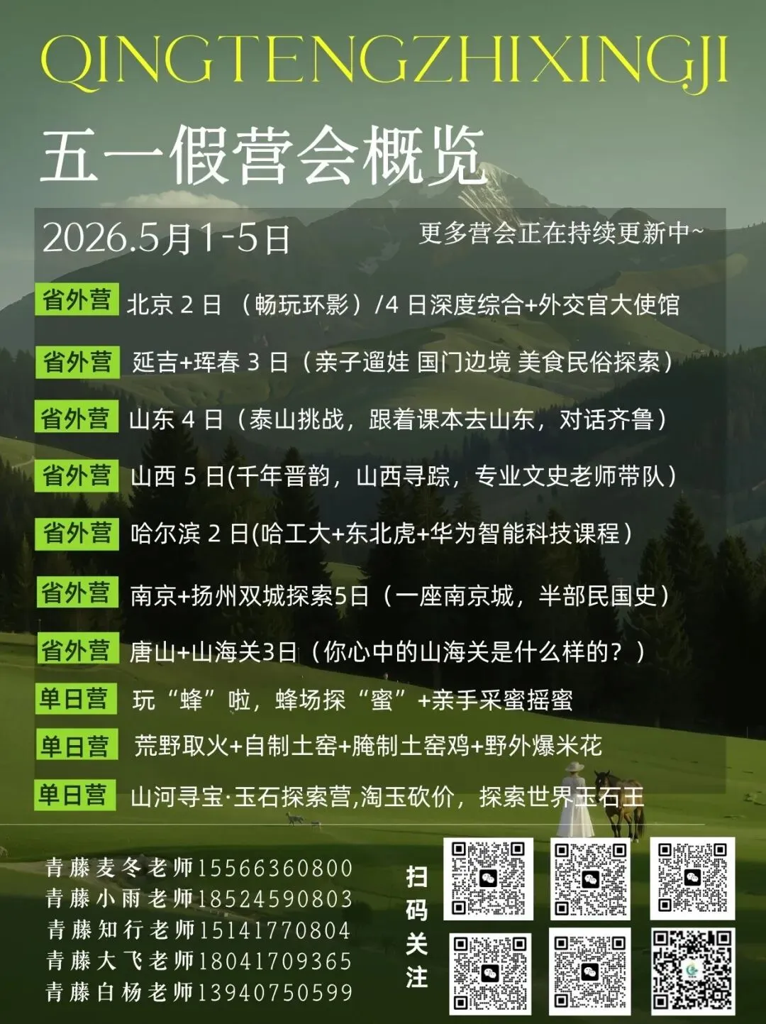 青藤知行纪--营口国之旅分公司涵盖了青少年多元体验式、户外拓展式活动、社区自然教育、组织文化艺术交流、国内外文史精讲,萤火益童盟军事及营地联动/亲子遛娃公社/蚂蚁力量儿童义工团/营口市志愿者协会志愿者服务,我们专业从事各类户外亲子体验式游学活动,举办各类适合孩子们的游学活动,包括自然教育、科普农事教育、成人拓展团建、公益教育助力童年、青少年独立一日及多日营,北京,上海,山东,西安自主研发深度研学课程,委托当地最优质的旅行资源及正规导师,旅行社专线旅游咨询等活动,深受孩子们和家长的喜爱及好评。我们的宗旨是纸上得来终觉浅,绝知此事要躬行。