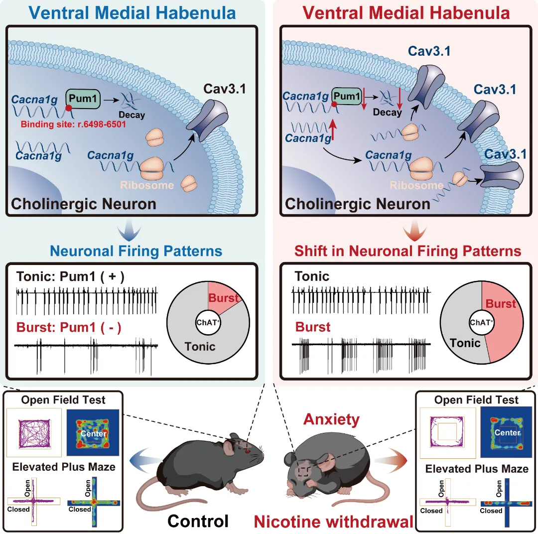 本研究将焦虑的病理机制锚定于“神经元放电模式”这一更基础的神经动力学层面,并首次揭示了Pum1–Cav3.1分子轴在其中的核心调控作用。这一原创发现不仅突破了传统“神经递质失衡”理论的局限,更为抗焦虑创新药物的研发开辟了全新的靶标体系——从“化学信号调节”走向“电生理节律修复”。未来,以Cav3.1通道和Pum1蛋白为代表的新型靶点,有望催生具备“高效、低毒、非依赖”特征的新一代抗焦虑药物,为临床患者提供更安全有效的治疗选择,同时为我国在精神神经类药物领域的“First-in-class”原始创新提供重要的靶标储备。