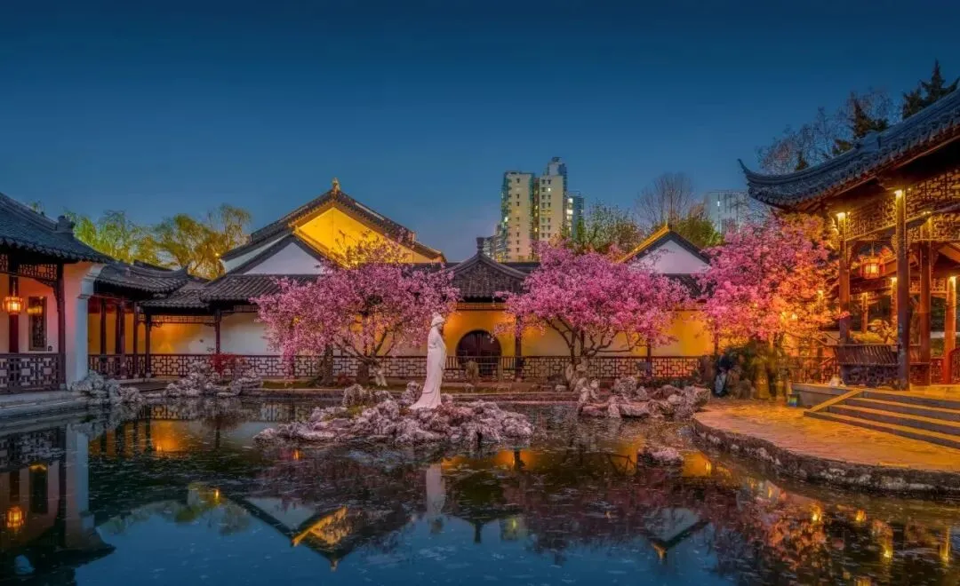 精准打卡地:南京莫愁湖公园水院(认准水院,别跑错啦,这里的夜海棠最出片)