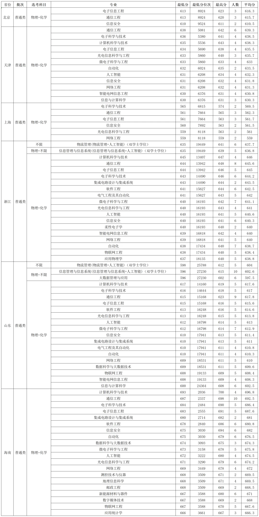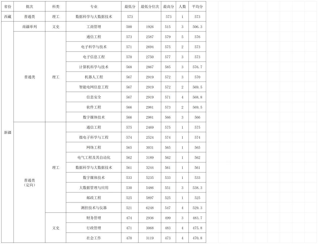 南京邮电大学2025年在西藏、新疆各批次各专业 录取分数线