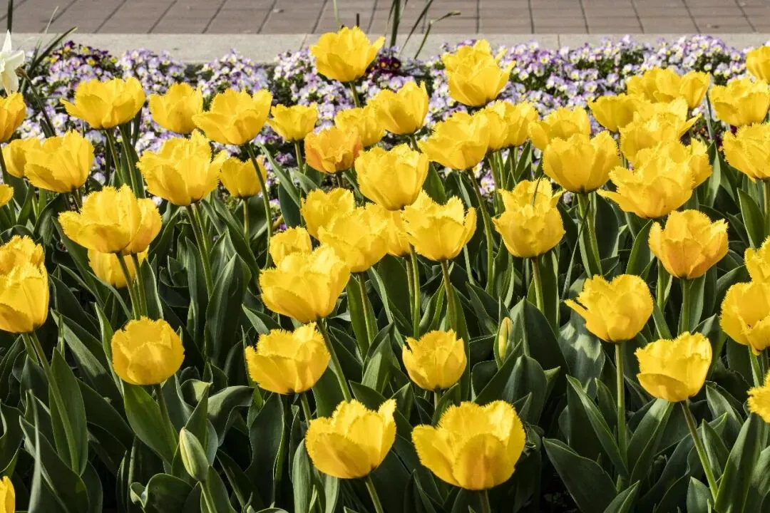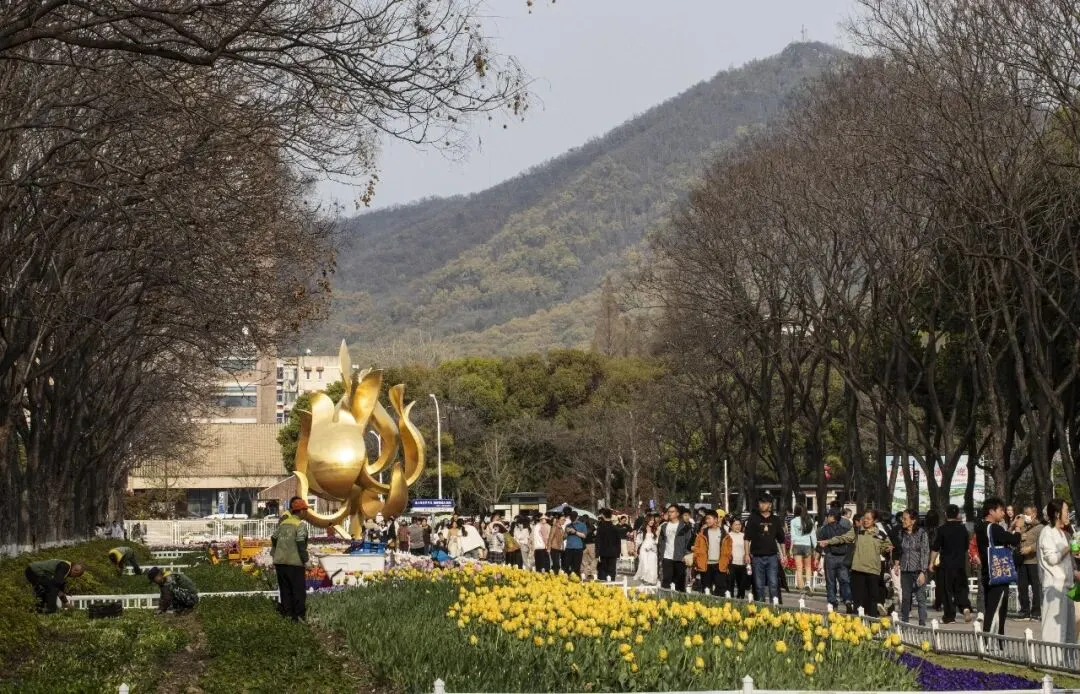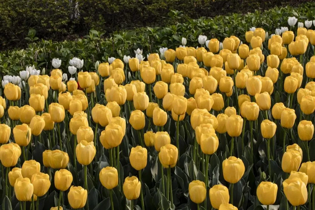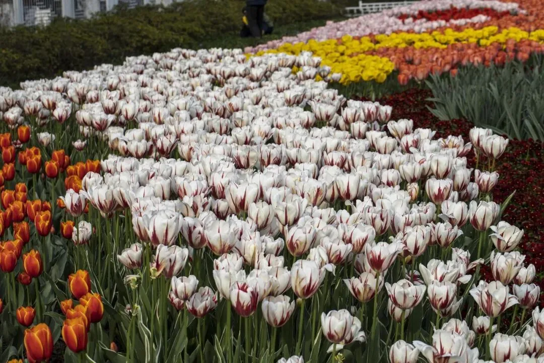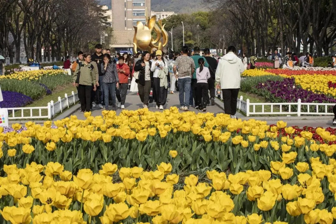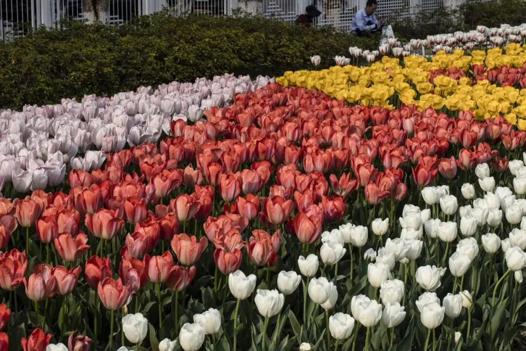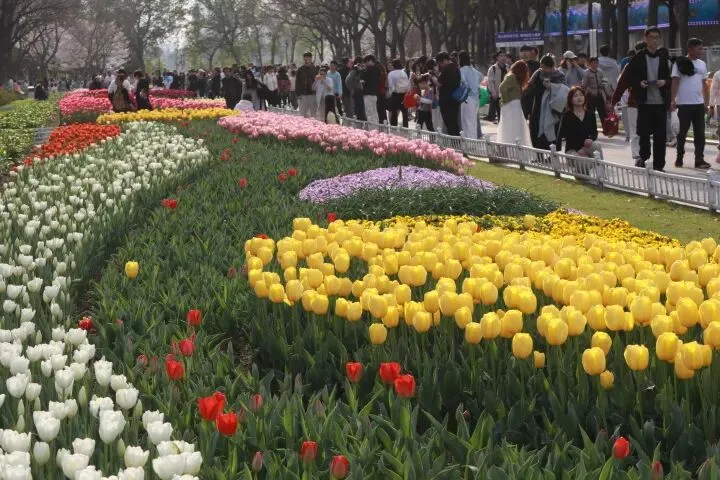 郁金香 Tulipa × gesneriana 郁金香属 Tulipa 百合科 Liliaceae,是百合科郁金香属多年生球根花卉, 又名草麝香、旱荷花、洋荷花、洋水仙、郁香等 。花期4-5月 。原产欧洲,中国引种栽培,是广泛栽培的花卉,因历史悠久,品种很多 。是荷兰、伊朗等国的国花 。南京玄武湖景区情侣园的郁金香盛开了。