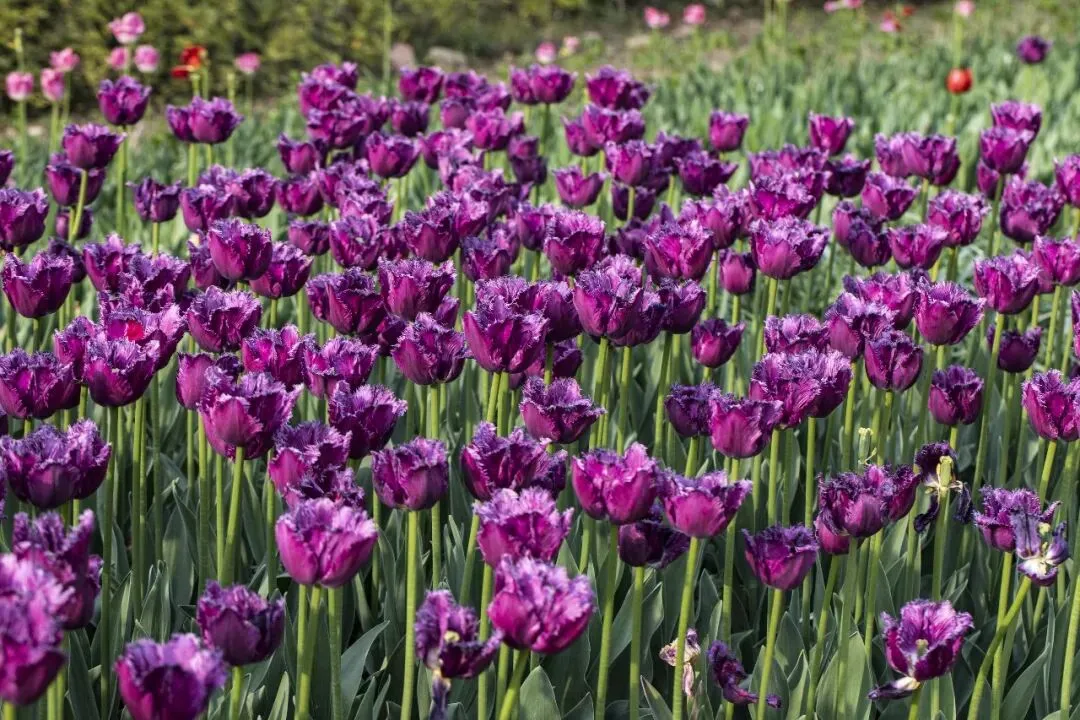 郁金香在园林绿化中具有无可比拟的优势。它们色彩鲜艳,花期长,易于种植和管理。无论是公园、广场、庭院还是私人花园,郁金香都能为环境增添一份独特的魅力。同时,它们还能与其他花卉和植物搭配,创造出丰富的视觉效果。