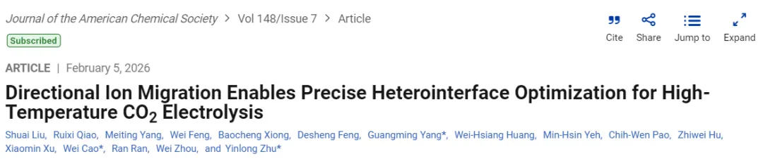 亲爱的读者们,不星标《纵横科研》公众号,会收不到我们的最新推送点击公众号主页右上角,星标《纵横科研》,不错过每一条科研资讯定向离子迁移实现高温二氧化碳电解中异质界面的精确优化