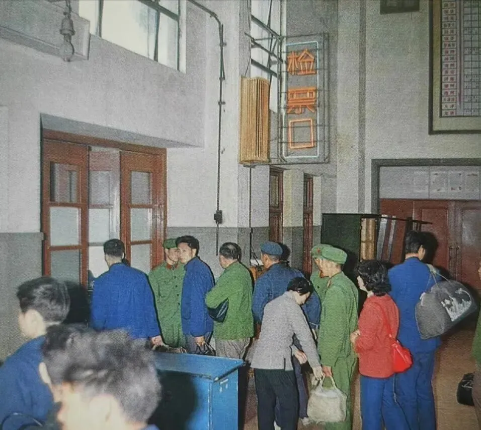 这张彩照里,门上头亮着俩大字“检票口”,队伍拐了个弯往里头排,横竖都是深蓝、军绿的衣裳,好几个人甩着胳膊就这么夹着个包站着,那种大帆布包子,揪起来沉甸甸的,里面装着过年回家的特产和替人捎的东西,我要说家里那口老包就是当年派上了用场,一点也不夸张。