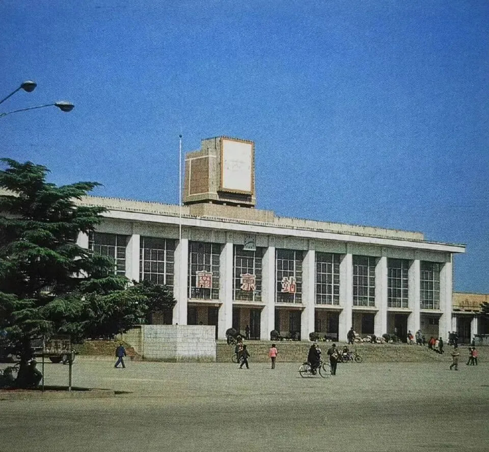 图中那幢方正的大楼就是当年的南京火车站,白色立柱,一排排玻璃窗透出老国营单位的气势,上头挂的时钟全年无休盯着来来往往,那时候不像现在动不动就是各种造型,火车站就得有大钟,准确一分不差,远远望见钟楼就知道自己要到家了,我妈说她第一次从外地到南京工作,一下火车就是抬头找钟,心里才稳当。