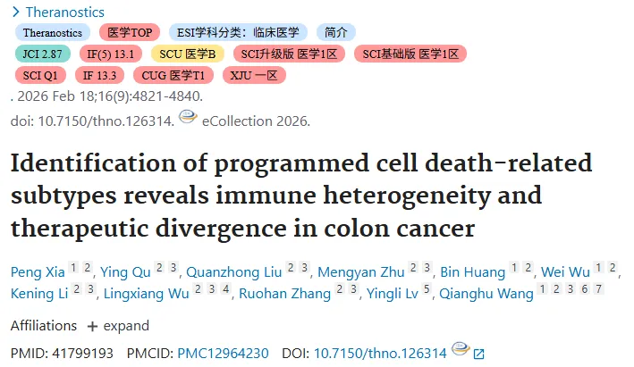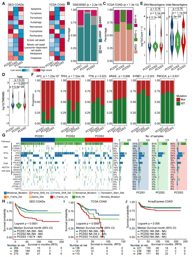 1.创新分类体系:整合凋亡、铁死亡等12种PCD通路,首次提出结直肠癌PCDS分子亚型分类,定义3种特征明确亚型,弥补传统分类未结合PCD通路的缺陷。
