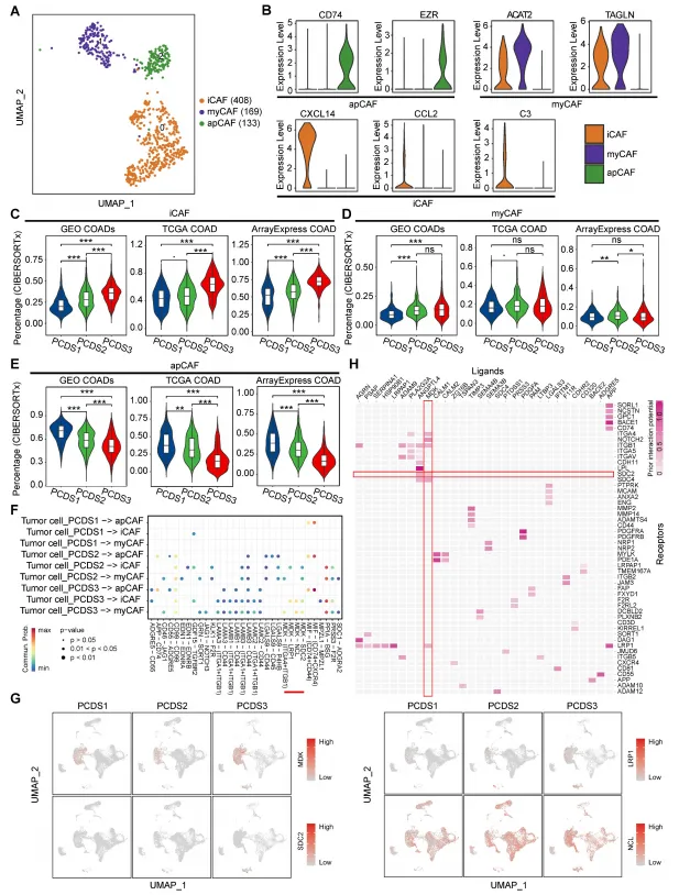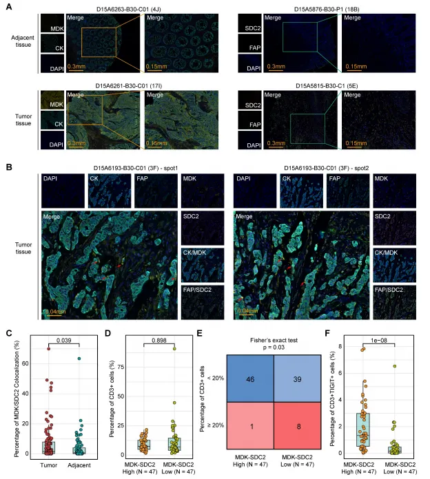 3.揭示核心驱动机制:通过单细胞和空间转录组分析,发现PCDS3中肿瘤细胞与成纤维细胞的MDK-SDC2配体-受体轴相互作用,是导致T细胞排斥的关键机制。
