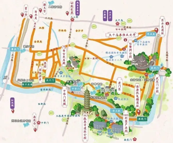 杜牧的《泊秦淮》,就是一种传唱千古的活广告,让秦淮河成为多少人梦想的诗与远方。“锦锈十里春风来,千门万户临河开”。“十里秦淮”,是秦淮风光精华所在。沿岸分布着秦淮水亭、桃叶渡、白鹭洲公园、江南贡院、萃苑公园、谢安纪念馆、李香君故居、瞻园、中华门瓮城等文化胜迹。从南朝开始,秦淮河成为名门望族聚居之地。两岸酒家林立,浓酒笙歌,无数商船昼夜往来河上,许多歌女寄身其中,轻歌曼舞,丝竹飘渺,文人才子流连其间,佳人故事留传千古。