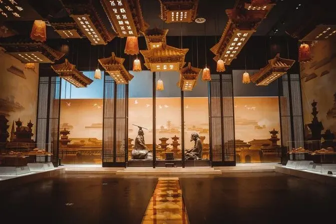 在南朝四百八十寺展厅的上方,展示了南朝佛刹林立的景象,两旁则展示了各大寺庙的模型。