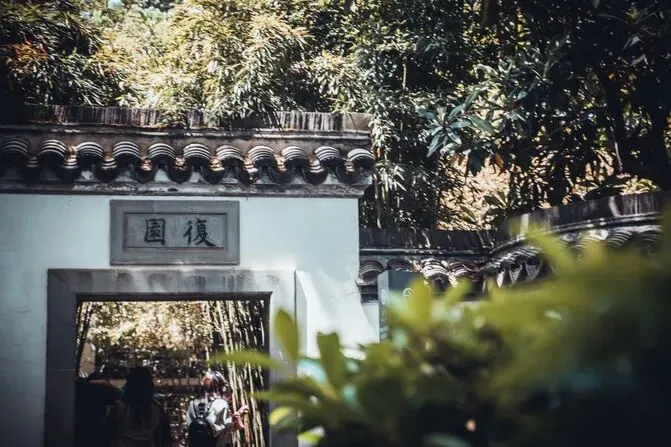 沿着长长的回廊漫步向里,小楼一座连着一座,一层套着一层,颇有走山路时一山放过一山拦之感。转身下楼,发现已经到了后花园。复园中小池已经归于沉寂,喷泉似乎也在沉眠,再往东去就是防空洞。正堂的参观突然就到了尽头间。