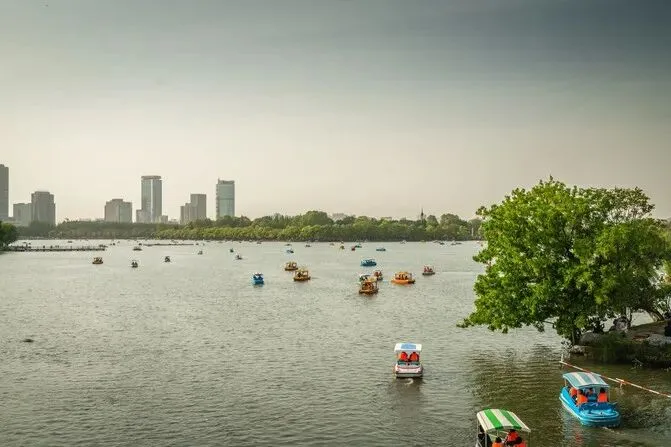 玄武湖位于南京城中,钟山脚下,是江南三大名湖之一。保存完好的高大壮观的明城墙沿湖而过、秀美的九华山、北极阁,古色古香的鸡鸣寺,都坐落湖旁,向远处眺望。便是郁郁葱葱巍巍紫金山。