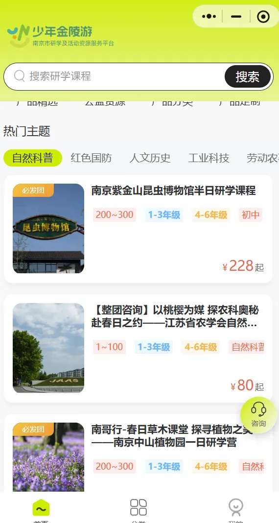 为破解行业痛点,南京市采纳多所名校校长提议,由国有文旅企业牵头打造全省首个市级研学专属平台——南京市研学及活动资源服务平台“少年金陵游”,并于今年3月16日正式上线。平台首批征集近400款研学产品和活动资源,经专家严格遴选后,首批上线290余款优质产品,为家长和学生提供可靠的研学选择。