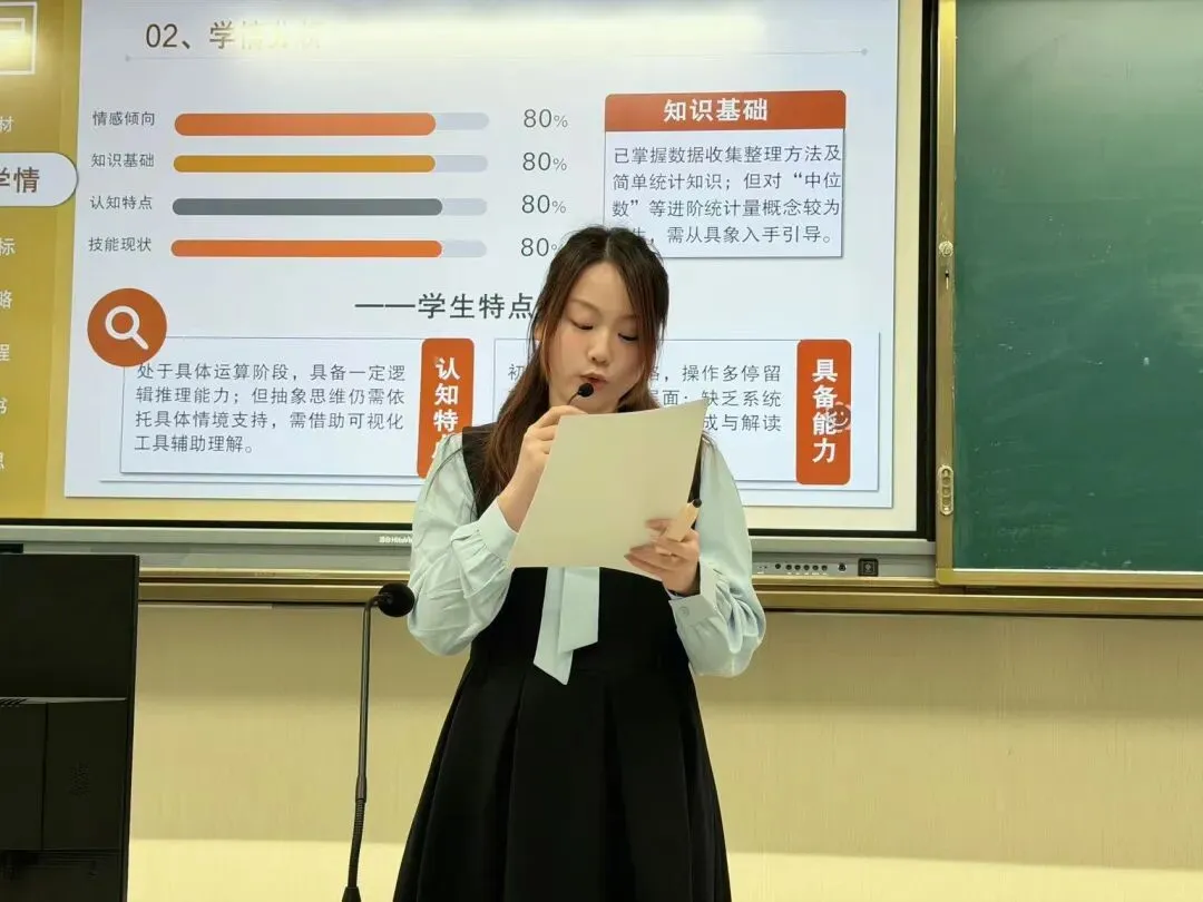 活动伊始,由江北芳小青年教师沈桢老师执教四年级研究课《数据的分析》。作为工作未满一年的新教师,沈桢老师的课堂从真实生活情境出发,引导学生循序渐进地体验数据分析的全过程,注重基础操作与思维方法的扎实训练,充分展现了青年教师对课堂教学根基的深入理解与实践潜力。她的成长与表现,离不开江北新区小学信息科技研训员秦晶老师长期以来对本校信息学科建设及青年教师专业发展的悉心指导与关怀。