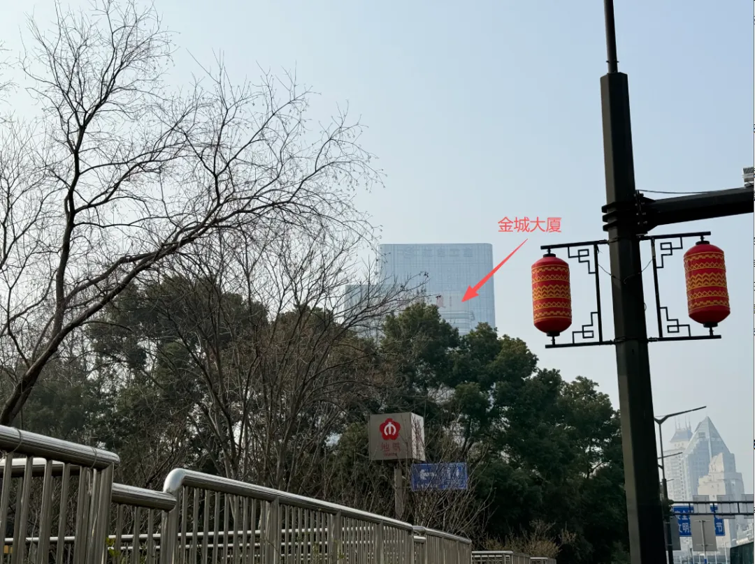 向左转,沿龙蟠中路步行约 600 米,经过金城大厦 B 区后向左转,抵达金城大厦 A 区正门。
