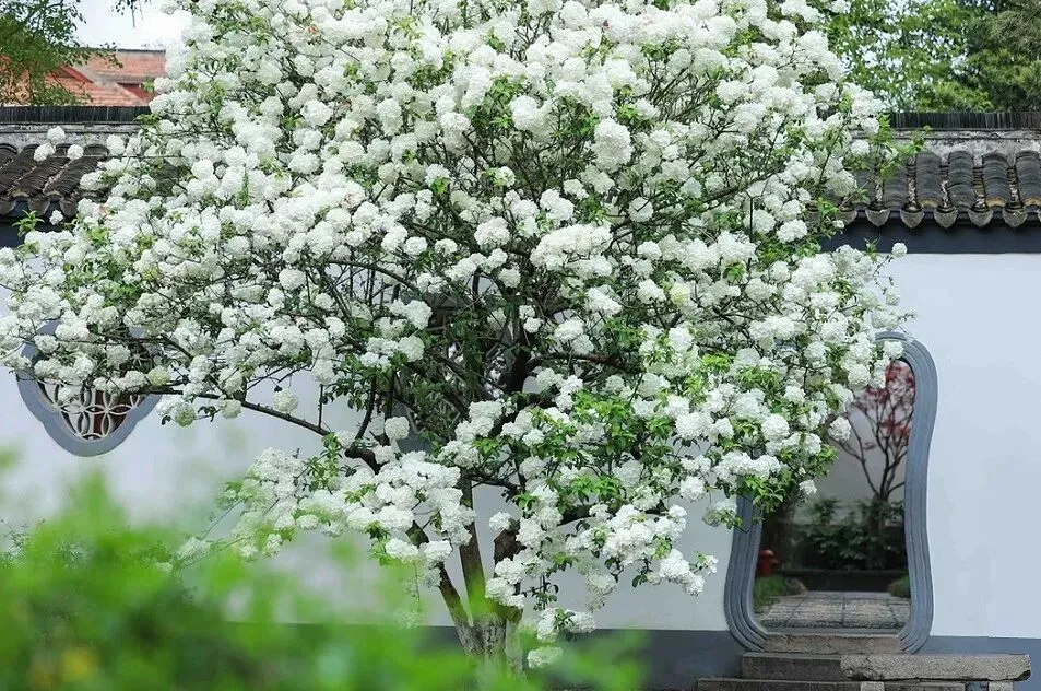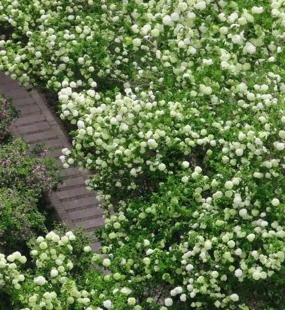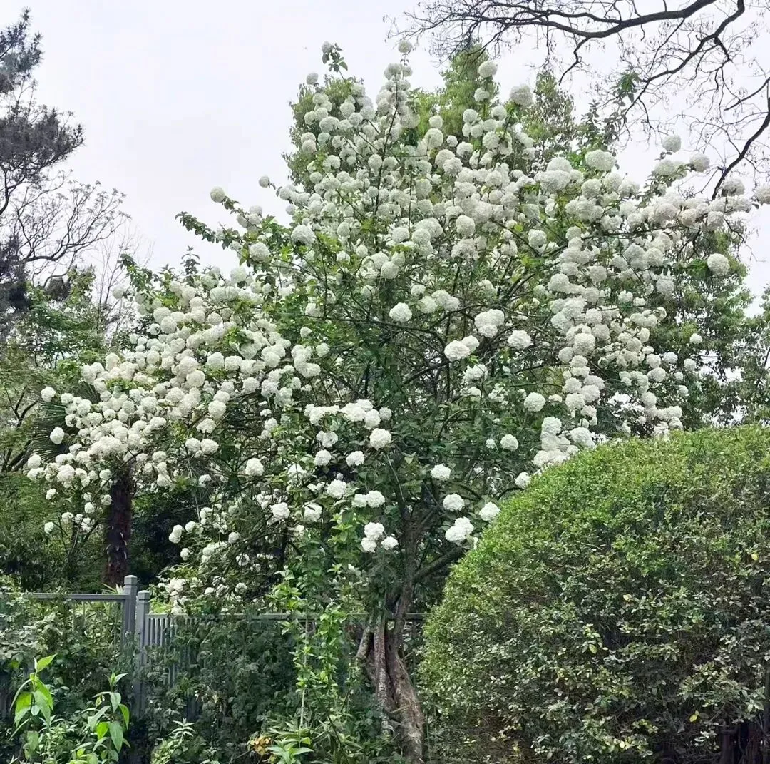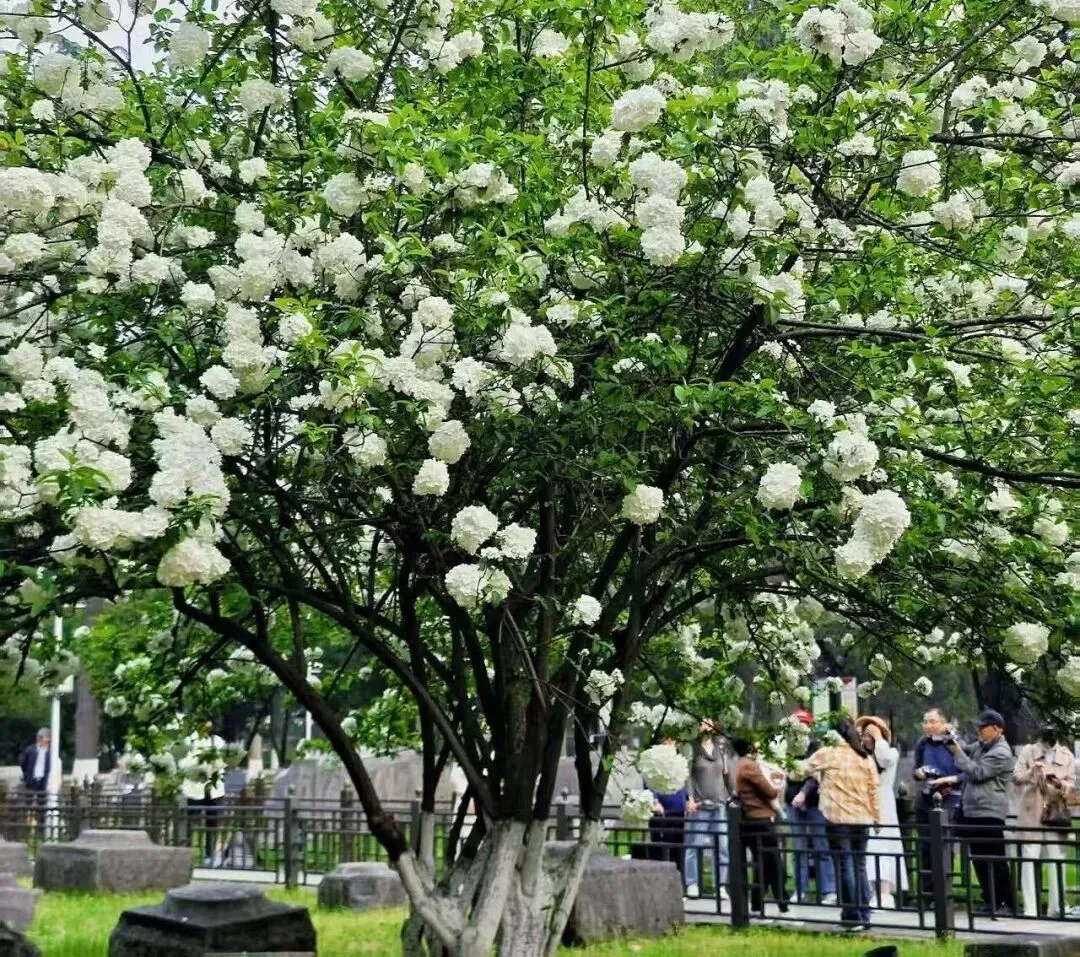 - 盛花期(4月上中旬):花球转为纯白,满树如雪球,最为壮观。