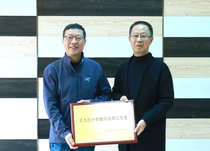 为加强教师队伍建设,充分发挥名师的示范、引领和辐射作用,促进数学教师专业素养的全面提升,推动学校数学教学高质量发展,2026年3月26日上午,小学数学名师工作室成立暨授牌仪式在我校隆重举行。学校聘请王九红教授担任工作室导师,田莉、朱妤、张映苗、陈晓琴、郭大萍、王苏妮六位教师成为首批学员,携手开启共研、共进、共成长的教研新征程。