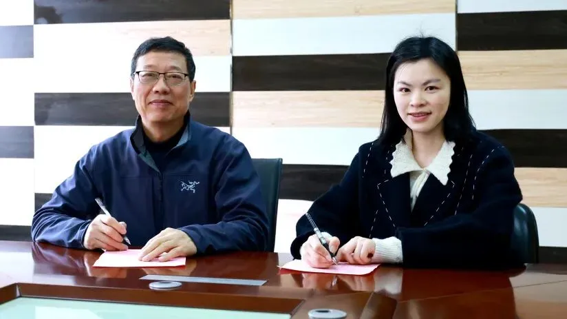 随后,王九红教授与工作室成员共同签署了《南京一中实验学校名师工作室师徒结对协议》,明确了导师与学员的职责、目标及成长路径,也为后续工作室开展教研学习、课堂实践、课题研究等工作奠定了坚实的基础。学员代表张映苗老师在发言中表达了全体学员的决心与期待。她表示,将以导师为榜样,静心钻研教学,潜心立德树人,在专家的引领和同伴的互助下,不断提升自身的教学水平和教研能力,努力成长为有教育情怀、有专业素养、有扎实能力的优秀数学教师。