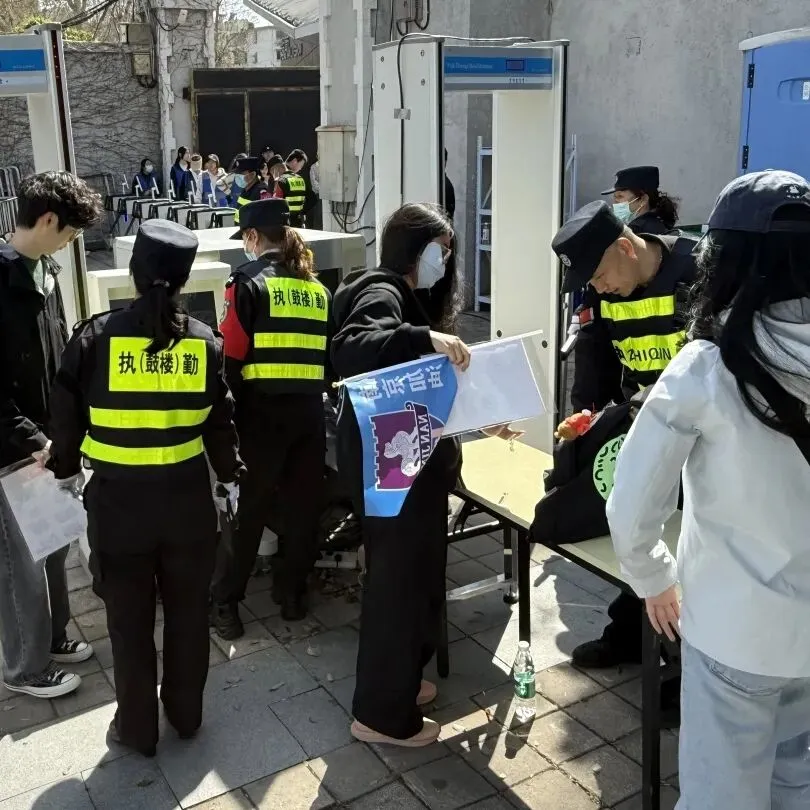 此次任务,鼓楼分公司共抽调百余名精干安保队员,配备安检通道机、安检门、金属探测仪、对讲机、各类防暴器材等专业装备,全员提前3小时到岗集结。从入口安检、引导分流,到秩序维护、安全巡查,再到突发情况处置,各岗位人员各司其职、协同联动,构建起“点、线、面”结合的立体化安保防控体系。