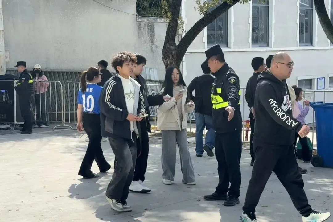 比赛当日,体育场迎来超一万五千名球迷观赛,人流、车流密集,其中地铁口接驳的D入口作为人流量最大的核心关口,按照方案实行“双人双检”模式,保安员一边快速完成安检排查,一边耐心引导人流分流,避免出现拥堵积压,成为赛场入口的“硬核屏障”。