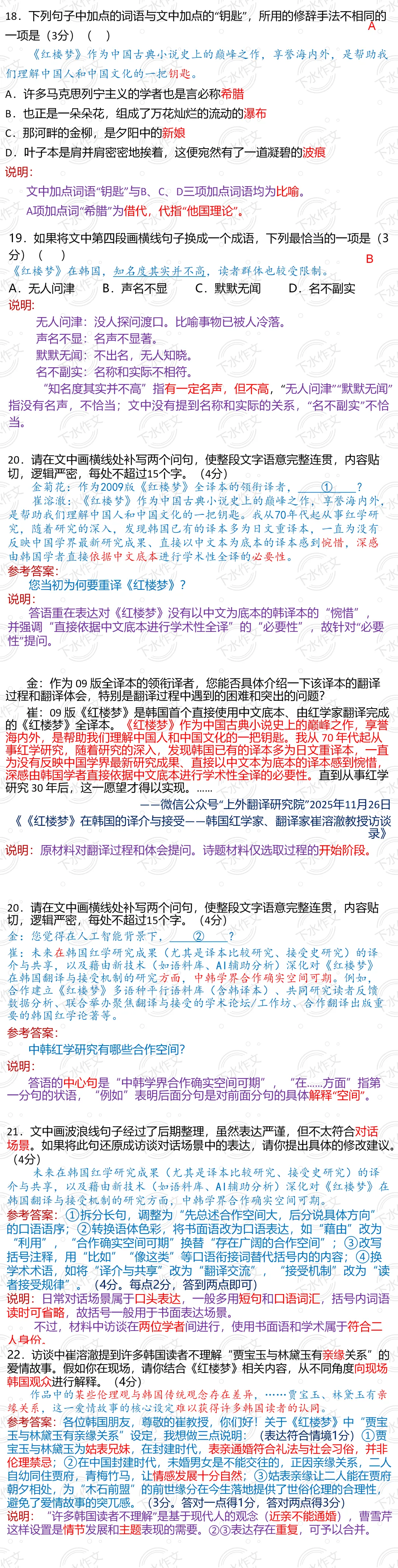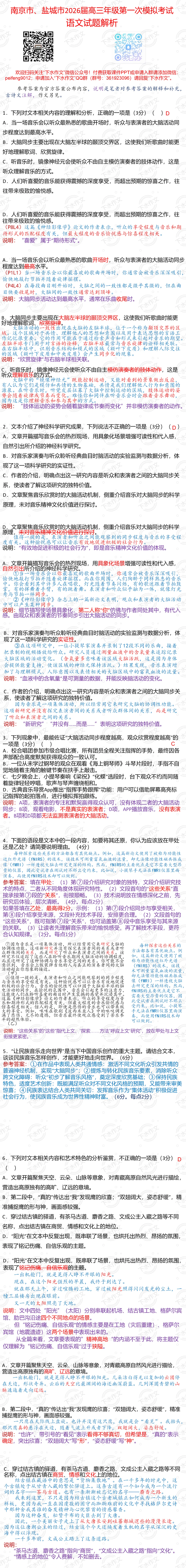 2026年武汉市三月调研考试语文试题解析及说明(修订版)