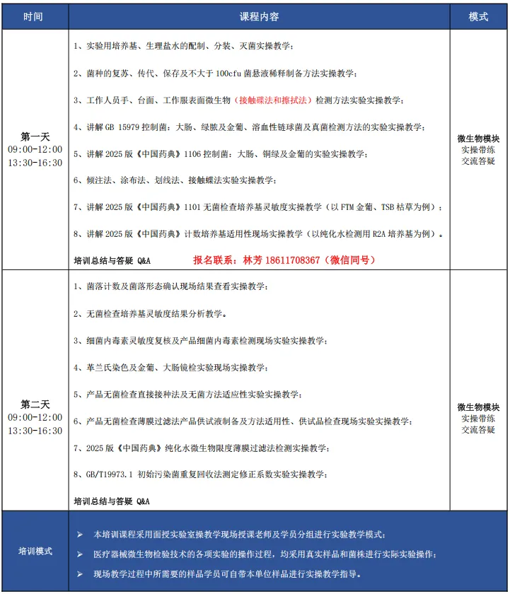 ●4月11-12日南京2025版《中国药典》医疗器械无菌微生物检(化)验员规范化实验实操培训