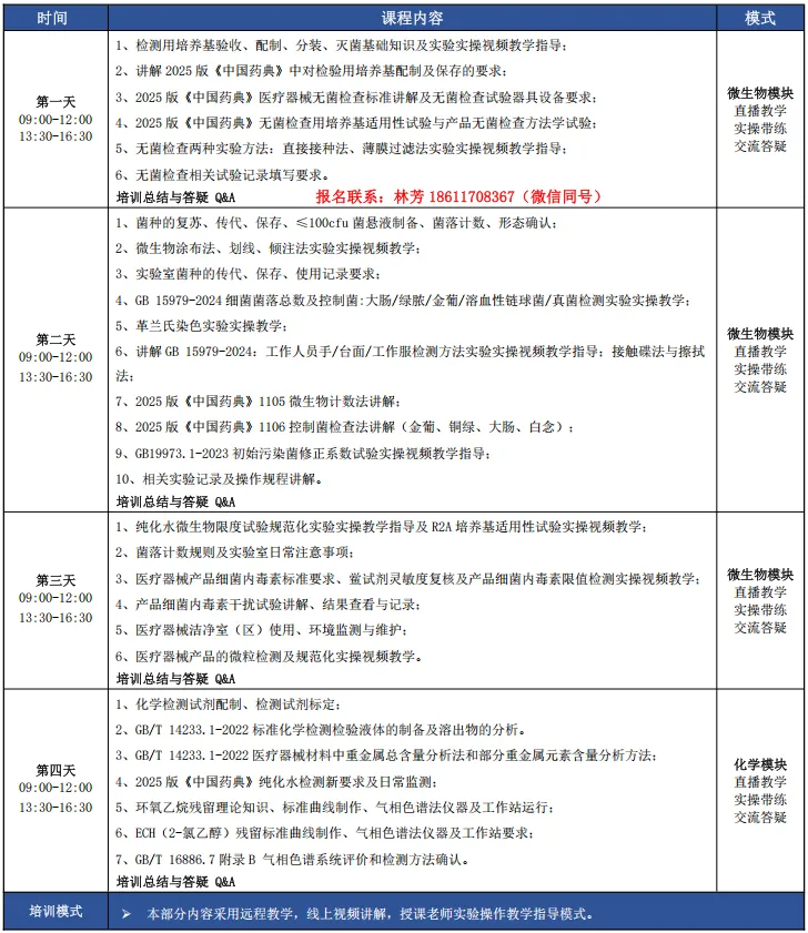 ●4月27-30日网课2025版《中国药典》医疗器械无菌微生物检(化)验员规范化实验实操培训