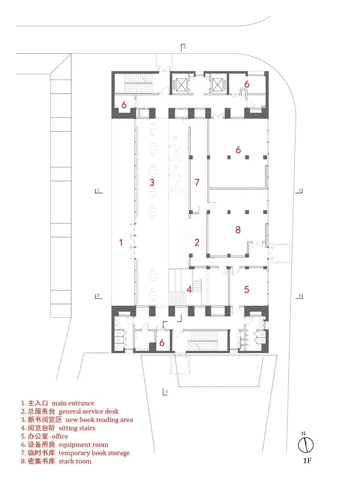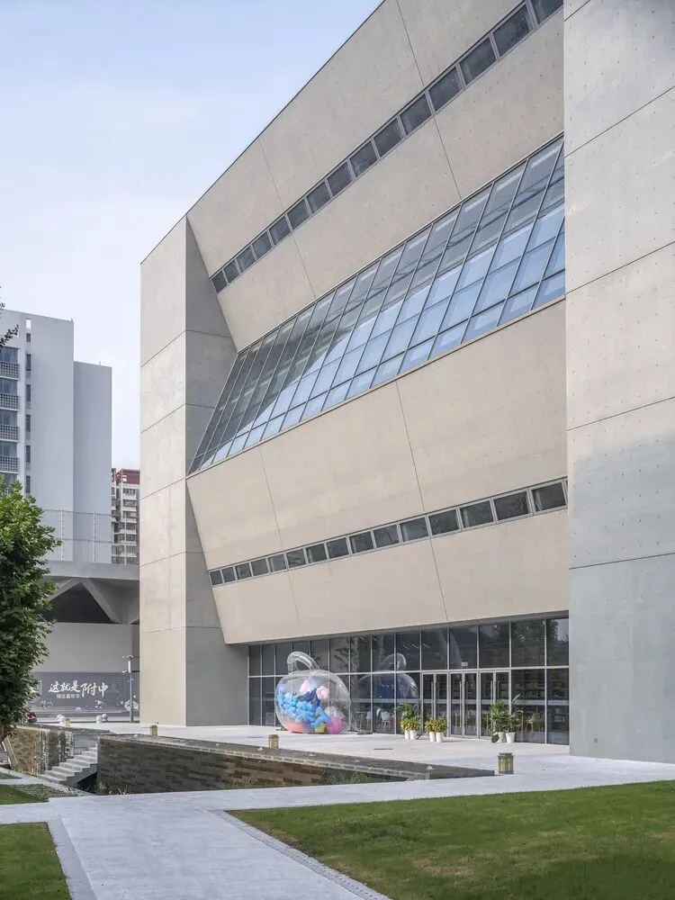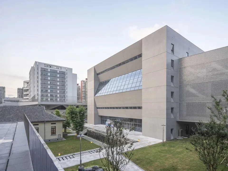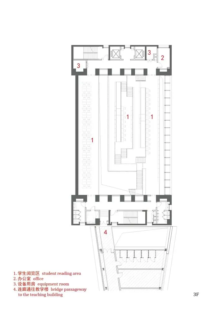 图书馆位于校园中心的文保建筑广场东侧,规模约 3800 平方米,是“开放式学校”设计理念的具体体现。