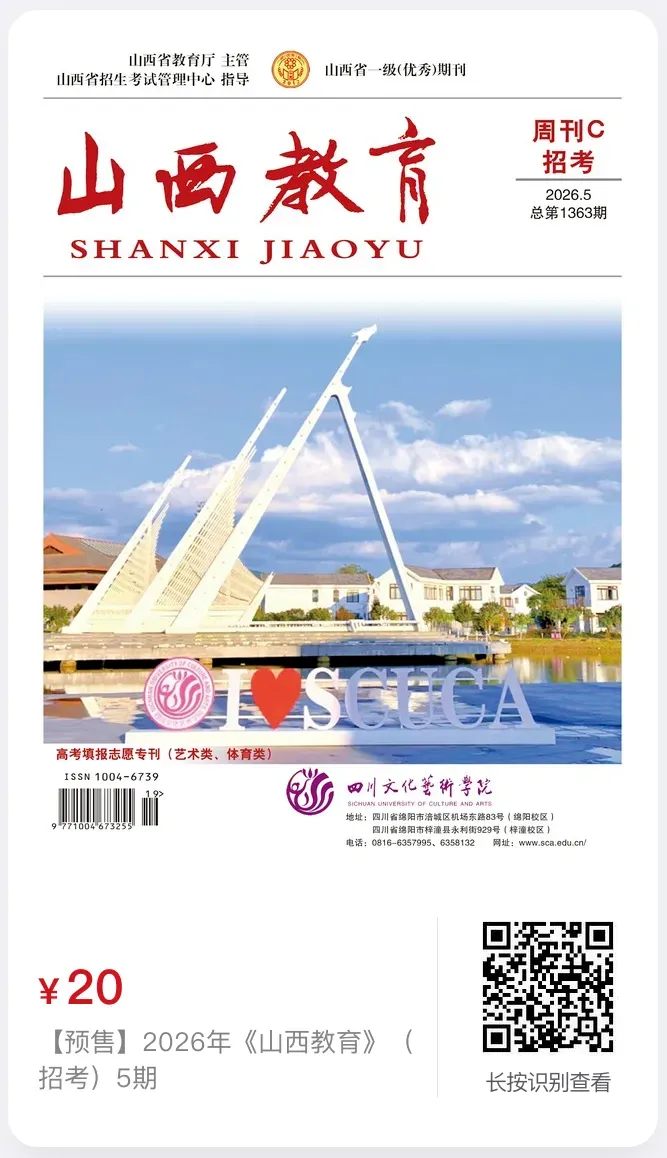 《山西教育》周刊C(招考)杂志是山西省唯一一份面向广大山西考生的招生考试类权威期刊。本刊官方微信公众平台发布高考、成考、自考和对口升学、专升本、研究生考试等各类招考权威信息。