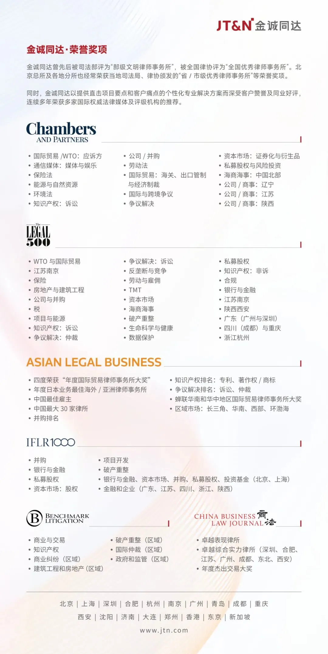 近日,南京市律师协会正式公布“2025年度南京律师行业专业建设成果评选活动” 表彰名单。本次评选旨在树立行业标杆,表彰专业成就,激励律师行业高质量发展。金诚同达南京分所四位律师凭借扎实的专业功底、突出的执业能力和显著的行业贡献,在评选中脱颖而出,荣获“优秀专业领域律师”称号。
